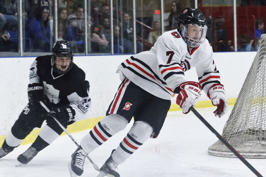 Saturday’s State bout – at the risk of gushing, a magnificently taut spectacle – rolled back and forth over the ice from start to finish. The teams traded swift incursions as their attacks repeatedly broke away only to be stymied at the last moment by a dogged defender or nigh-impenetrable goalie.