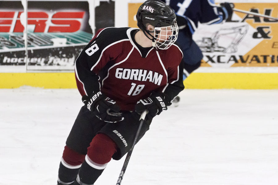 Gorham’s Michael Chapin cuts cross-ice in Saturday’s Maine Winter Classic.