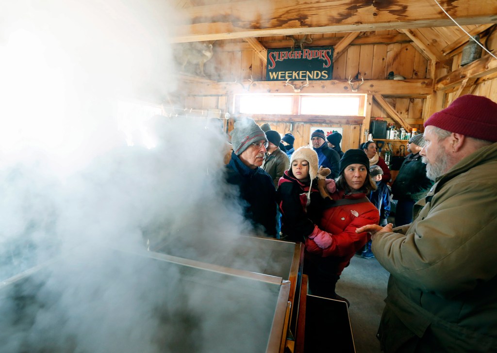 A line forms to get into the sugarhouse at Merrifield Farm in Gorham on Maine Maple Sunday. The annual event brings Mainers out to sugar houses across the state for samples of the syrup and demonstrations on creating it. Derek Davis/Staff Photographer