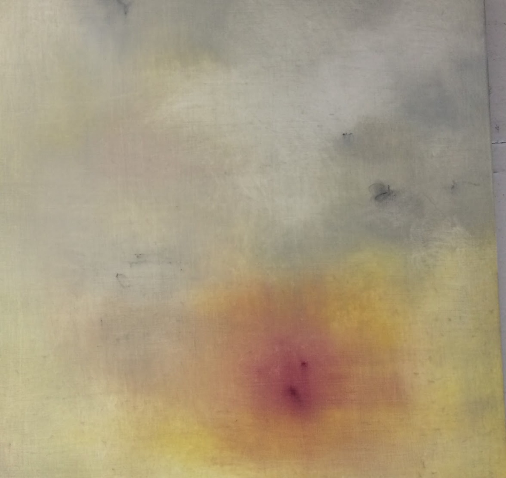 Paintings like “Anthem,” the larger “Milkweed” (imagine the silky explosion of the pod contents) or the waking-from-sleep’s soft cushion of “Morning,” reach out to welcome the viewer’s subjectivity. That is to say, Droge doesn’t try to force her emotional engagement with the work on us. She seems to leave us alone with our own readings and our own feelings. And as a fan of abstraction, I appreciate that: I like to enjoy non-objective paintings my own way.