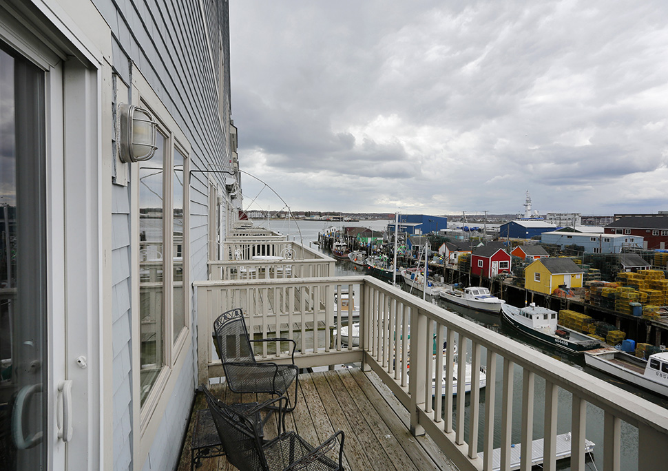 Closer to home, from the private balcony, you can admire the cityscape and enjoy the harbor activity, and appreciate the charming palette of brightly colored fishermen’s shacks along Widgery Wharf below.