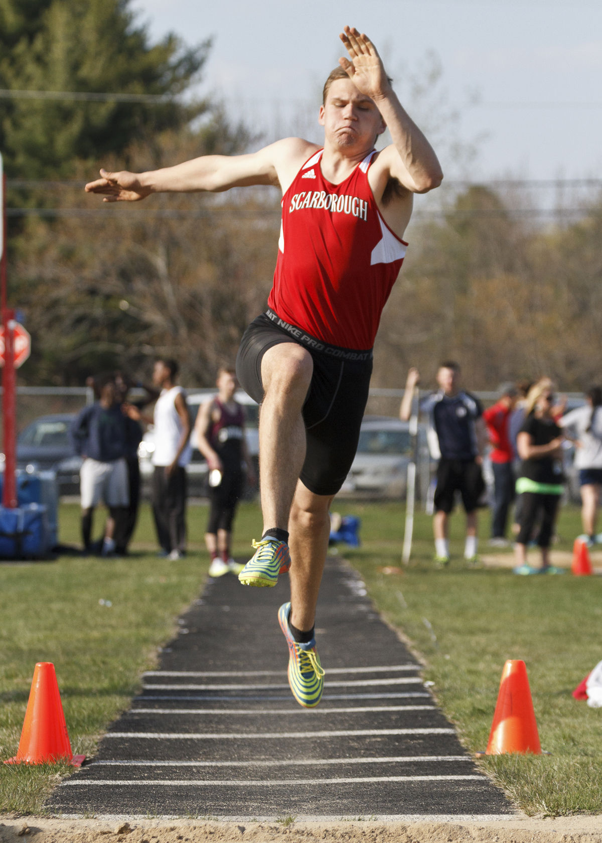Scarborough’s Sam Rusak took third in the boys long jump at Westbrook on Monday.