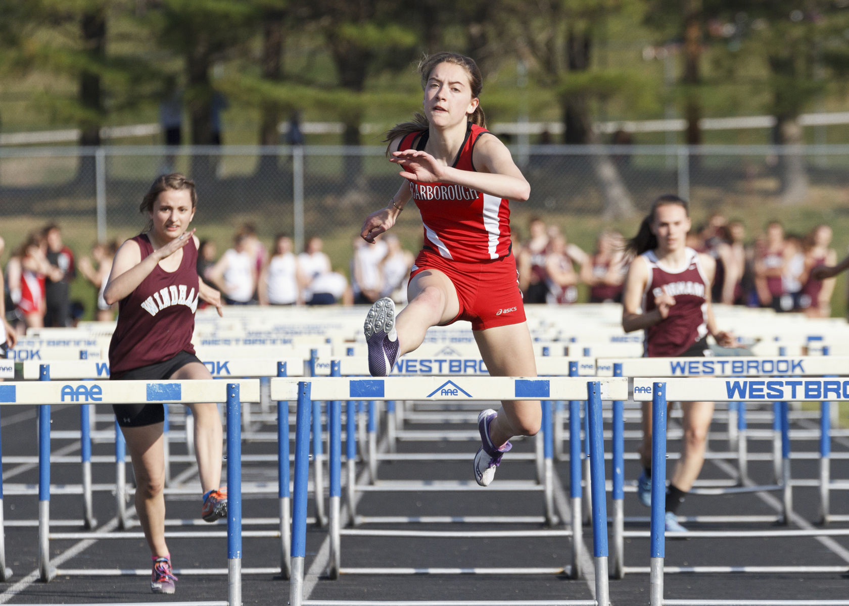 4×400: 1. Scarborough, 3:40.00; 2. Gorham, 3:51.50; 3. Westbrook, 3:56.70