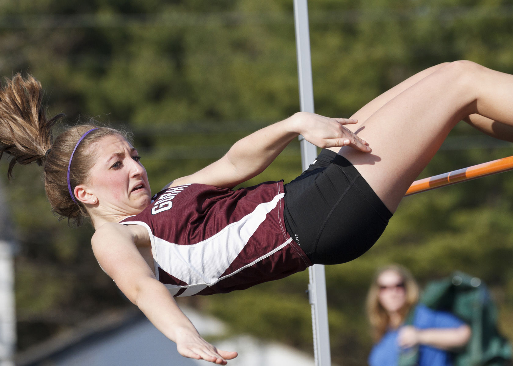 Gorham’s Jamie Juskiewicz competes in the girls high jump at Westbrook on Monday afternoon.