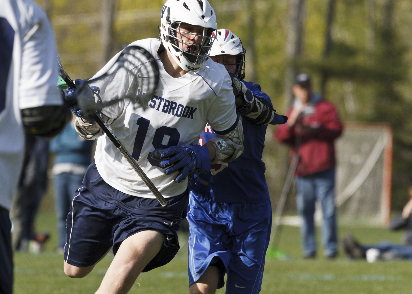 Westbrook middie Chad Pelletier tracks the action against visiting Mt. Ararat on Friday.
