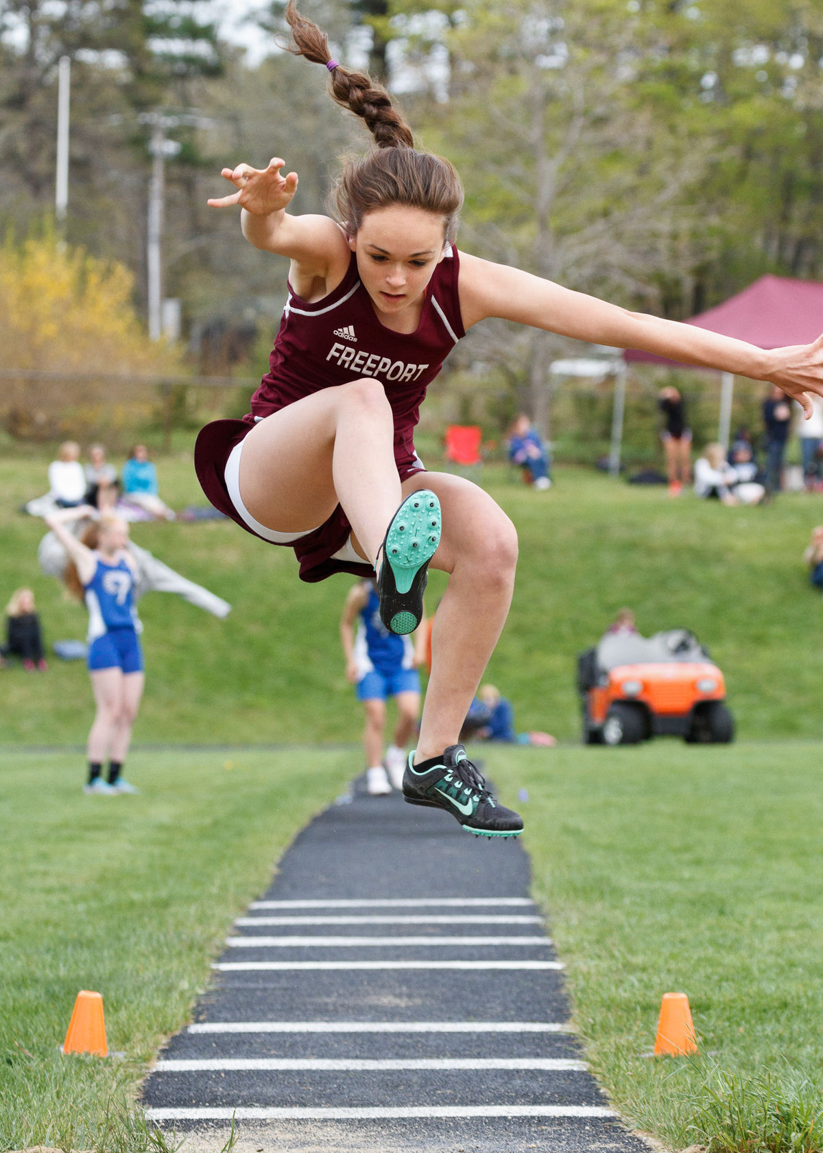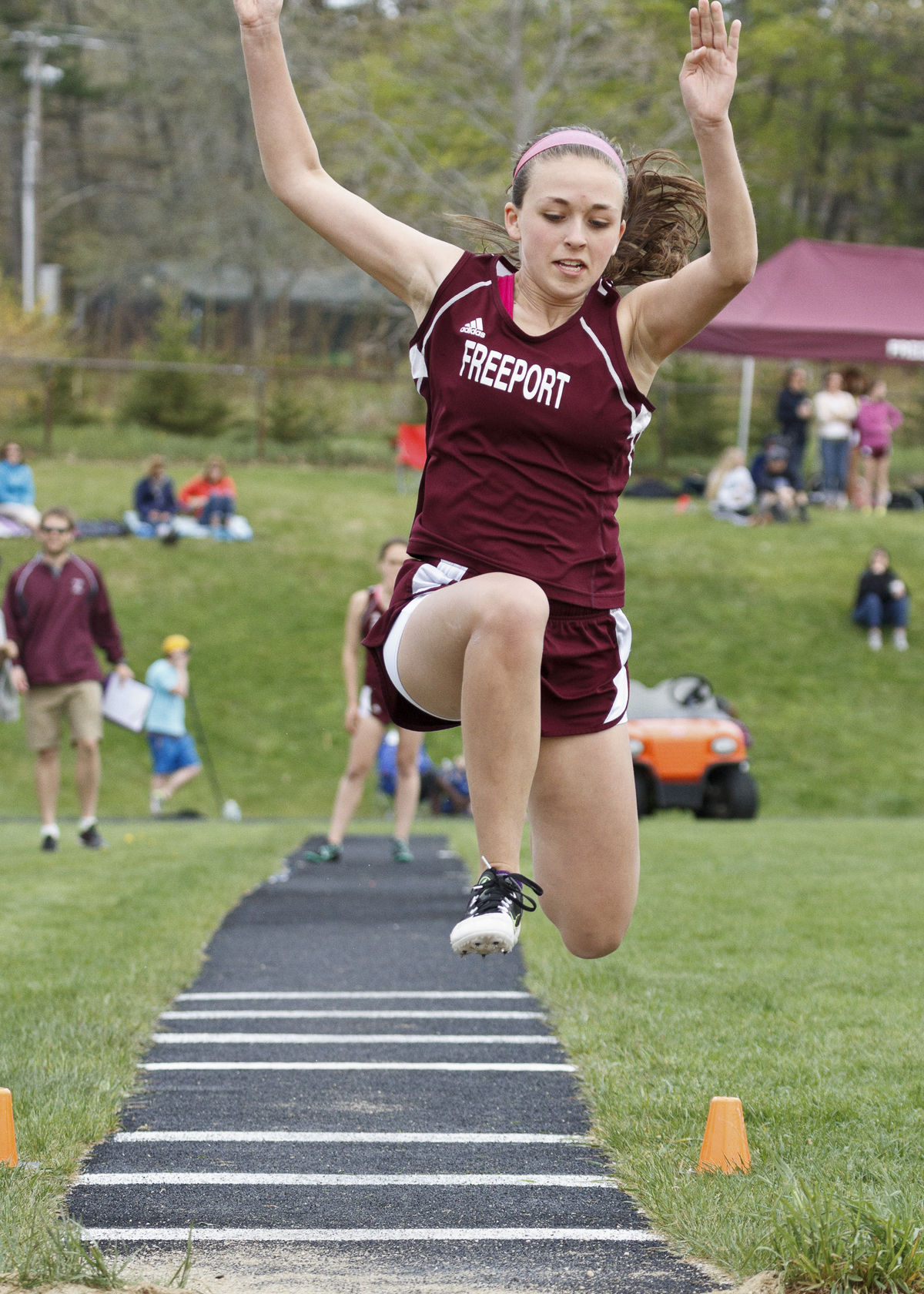 Long Jump: 1. Hannah Schnyder, Freeport, 15-04.25; 3. Anni Ball, Cape, 14-05.00; 5. Amber Smith, Freeport, 13-07.25