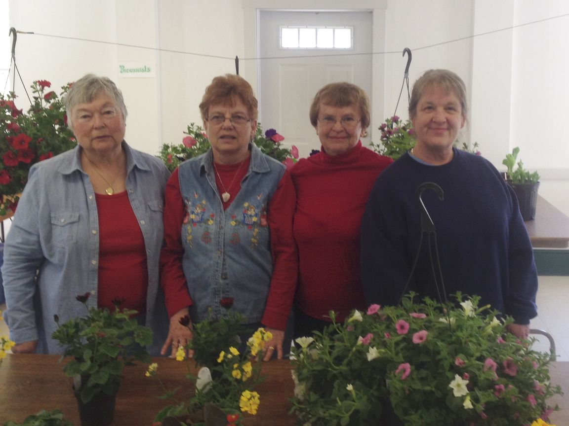 At the Durham Eureka Center Committee plant show last weekend are, from left, Anita Sellars, Pearl Scribner, Kathy Lowe and Martha Lewis. Volunteers Barbara Johnson and Jennifer Fitzpatrick, as well as Lowe and Lewis, were thanked by the committee for their efforts, as was Jeff Decker of JSD Property Maintenance, who picked up eights loads of dump runs as part of the fundraiser, and the Durham Youth Junior Explorers for providing the food and beverages. Courtesy photo