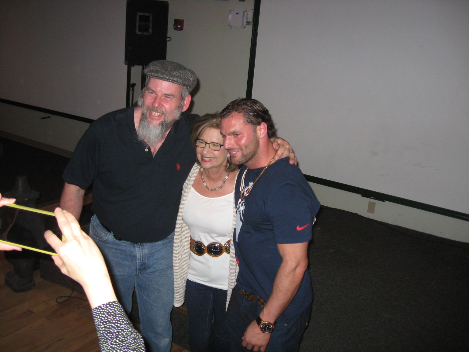A contestant on the CBS “Survivor” show, Dan Foley of Gorham, was voted off the show in episode 13 last week. Foley, left, poses for photos at his viewing party with WGME-TV 13 news anchor Kim Block and Rodney Lavoie, a “Survivor” cast member who was a surprise visitor at Foley’s viewing party. Staff photo by Robert Lowell