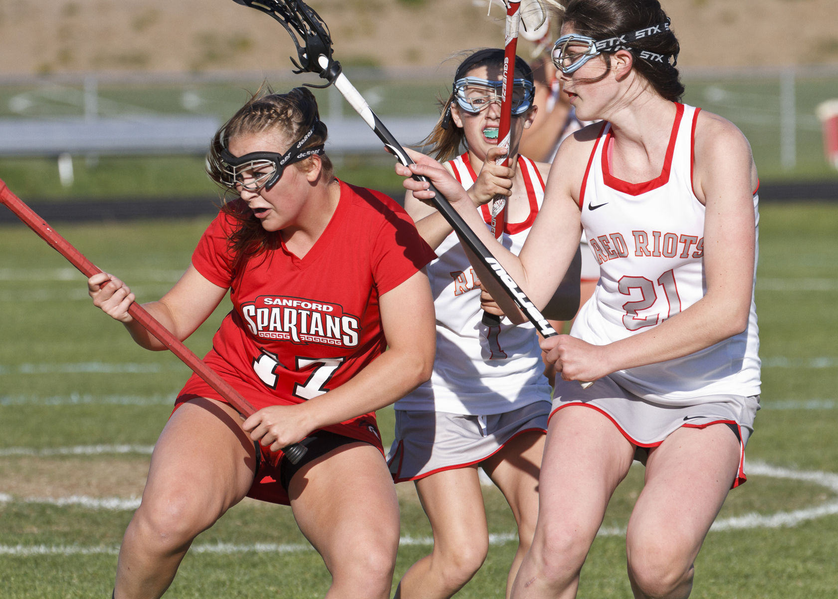 South Portland’s Mary Cronin and Maddie Hasson led the Riots’ offense over visiting Sanford on Thursday, shoveling a combined eight goals past Spartans keeper Eva Belanger in the first half alone. Hasson stayed particularly hot in the latter 25 minutes, and teammates Abby Letourneau and Colleen Fleming also found a groove as South Portland cruised to a 16-7 W.