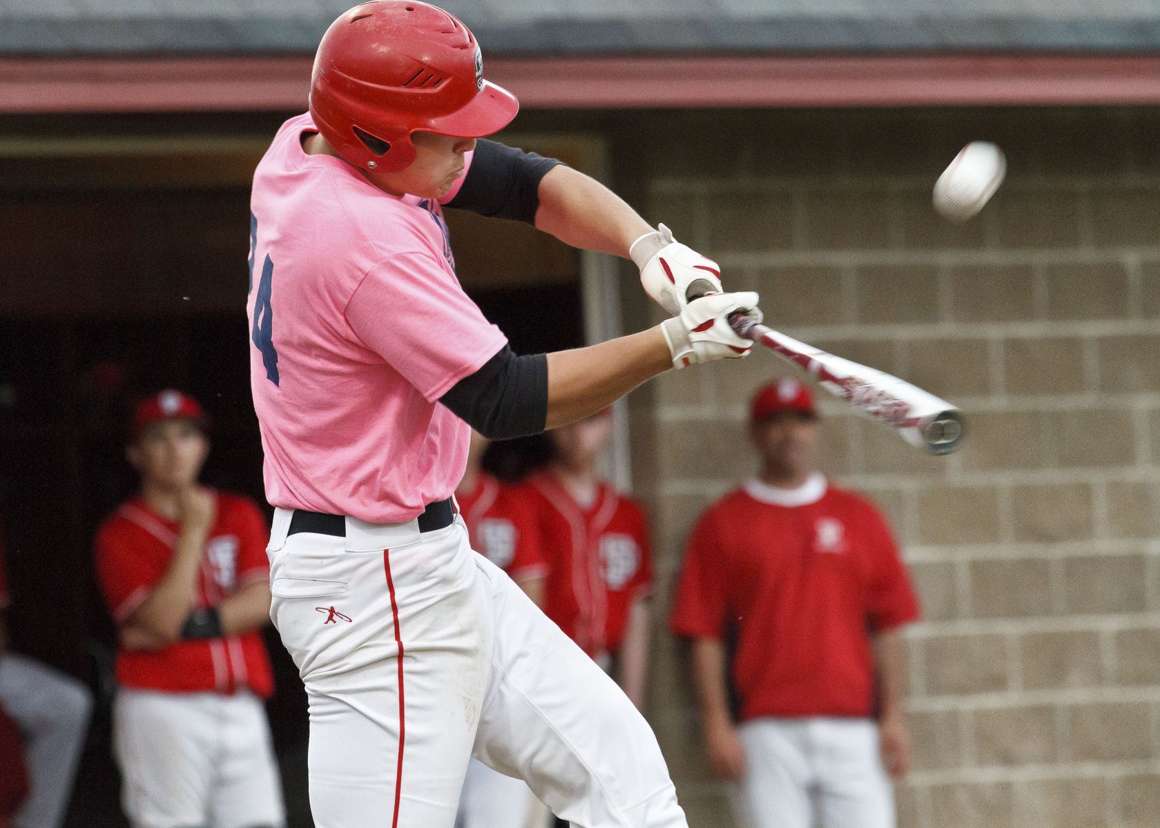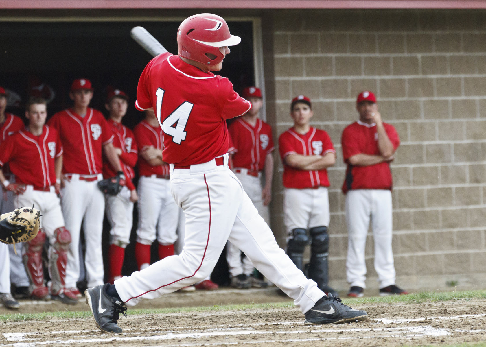 Josh Reed makes contact for the Red Storm against visiting South Portland on Thursday.