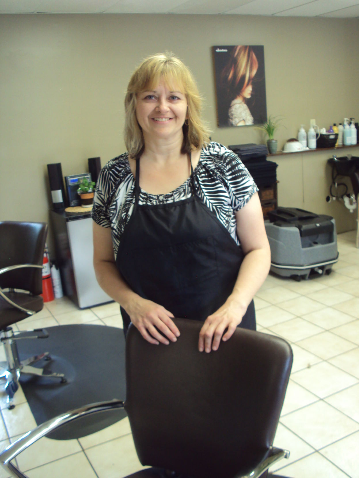 Lolita Kenney who has been in the hairdressing business for 30 years, opened Cutting Edge Salon four weeks ago in back of When Pigs Fly, at 21 Main St. in Freeport. Staff photos by Larry Grard