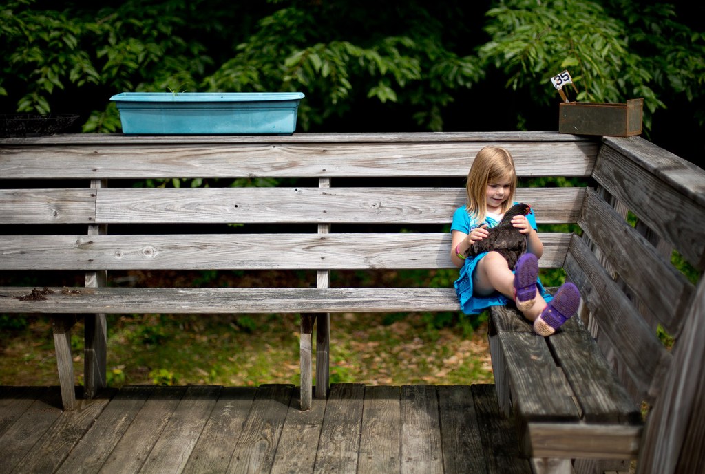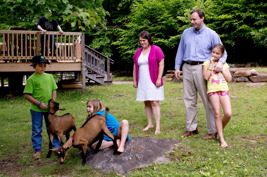 The family now lives in a modest wood-sided home on 20 acres about four miles from downtown North Berwick. Not quite “off the grid” but decidedly rural, the family homestead is also home to a growing herd of livestock. As their father spoke, 8-year-old Lucas and 5-year-old Naomi brought two of the chickens – Regina and Anna – as well as Sprinkles and Flint, the family’s Oberhasli goats, onto the deck to join the rest of the family, which included Eves’ parents.