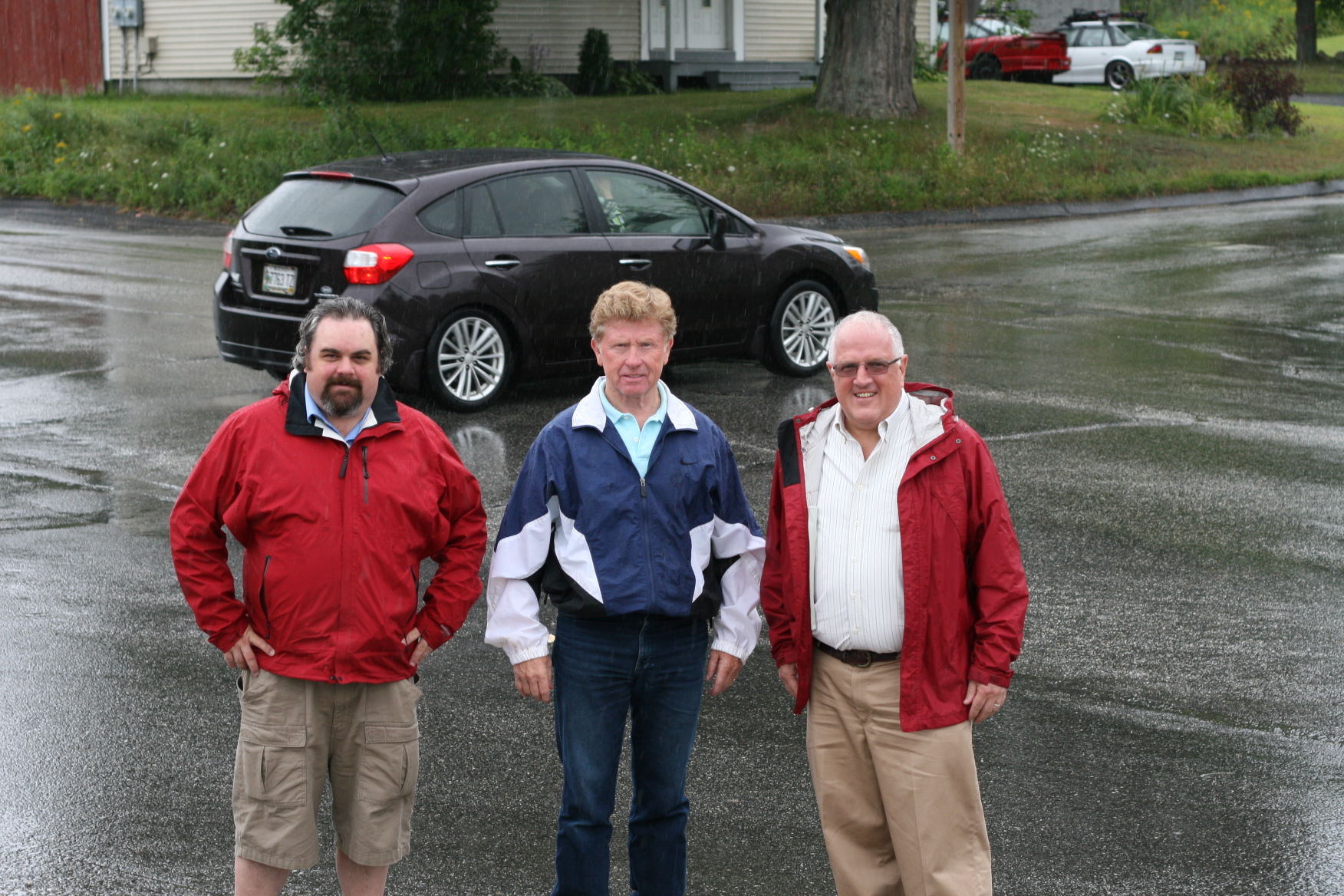 Local politicians, from left, Rep. Patrick Corey, Sen. Bill Diamond and Rep. Mark Bryant, are calling for improvements at the intersection of Falmouth Road and Route 202, the site of dozens of car crashes in recent years.Staff photo by Ezra Silk