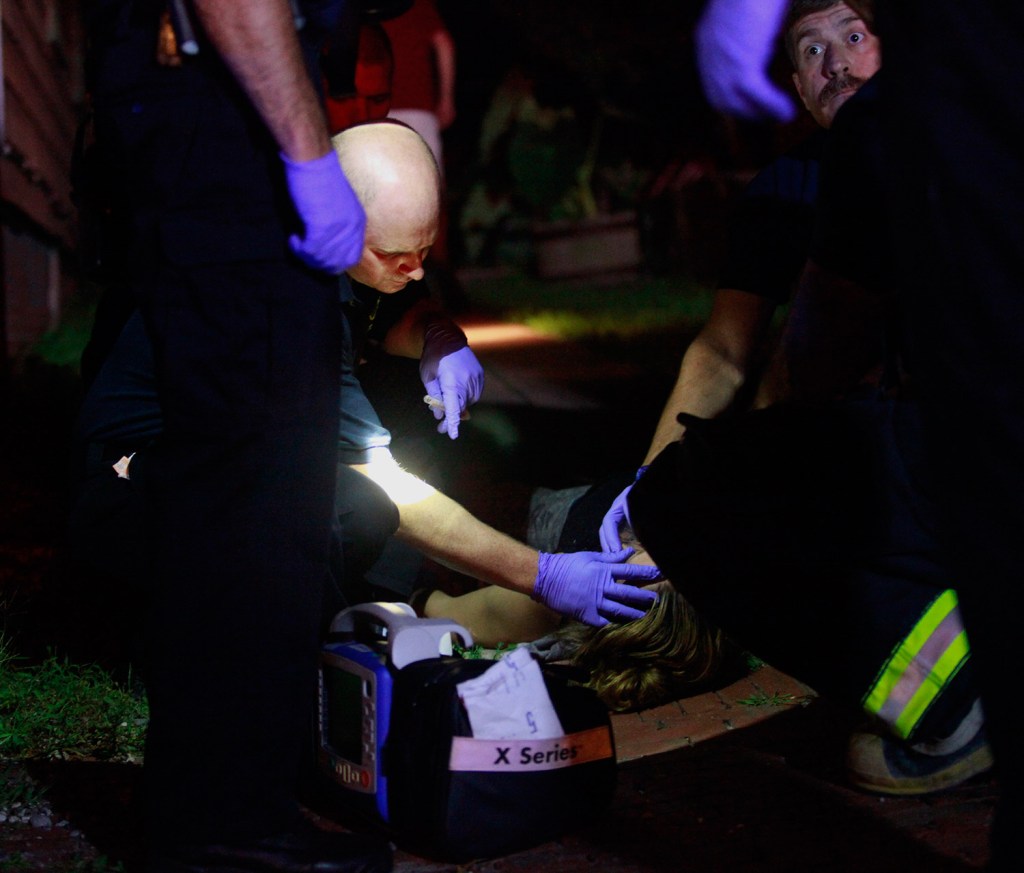 Several paramedics surrounded the unconscious woman’s body – sprawled on a driveway between two row houses. A passer-by had called 911.