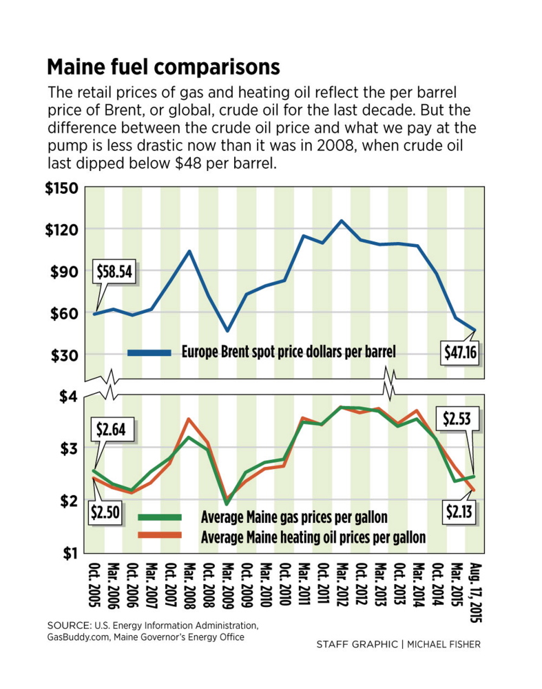 Like regular gas, the relationship between crude oil prices and the cost of heating oil is not a direct relationship, according to Lisa Smith, senior planner at the Maine Governor’s Energy Office.