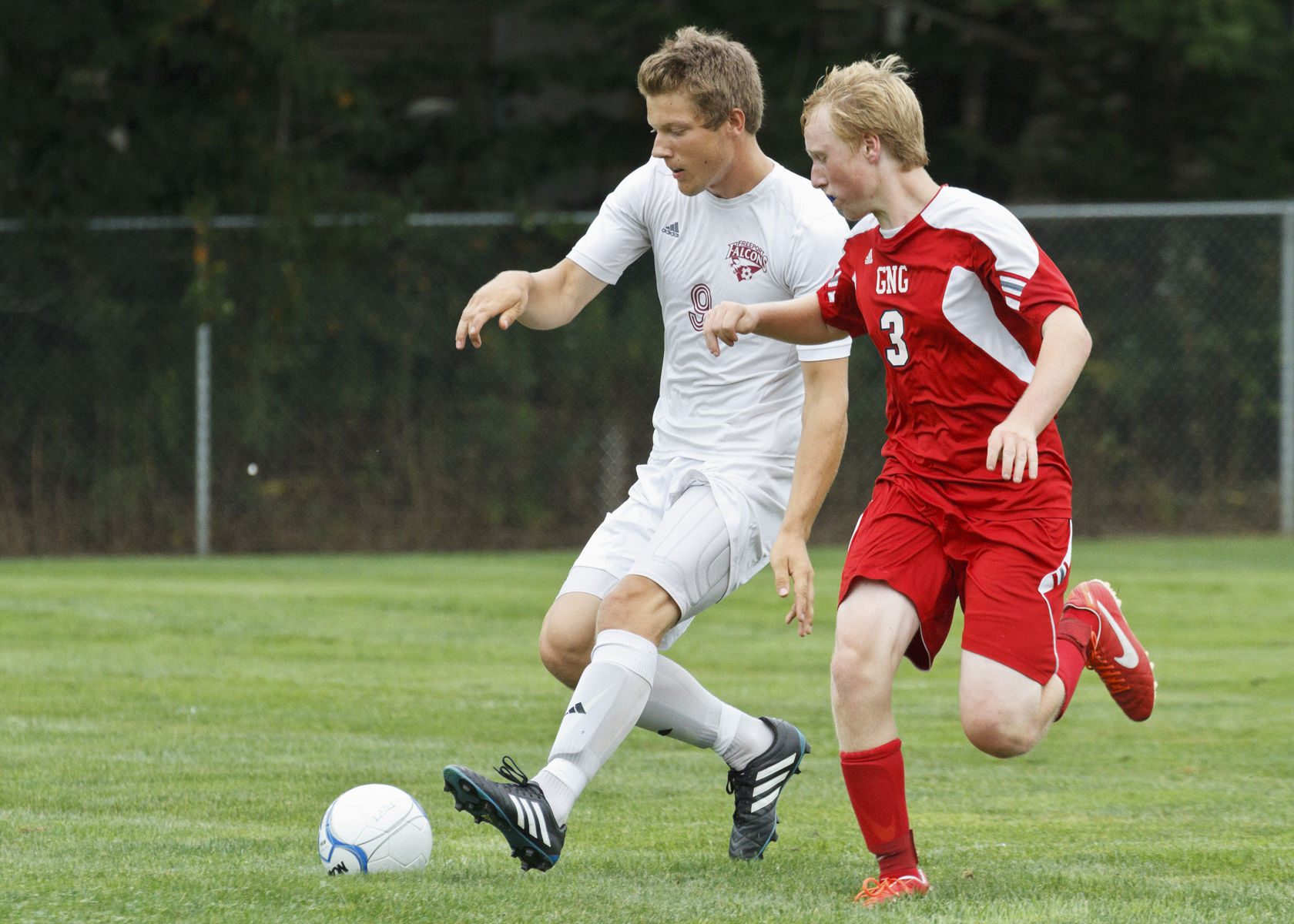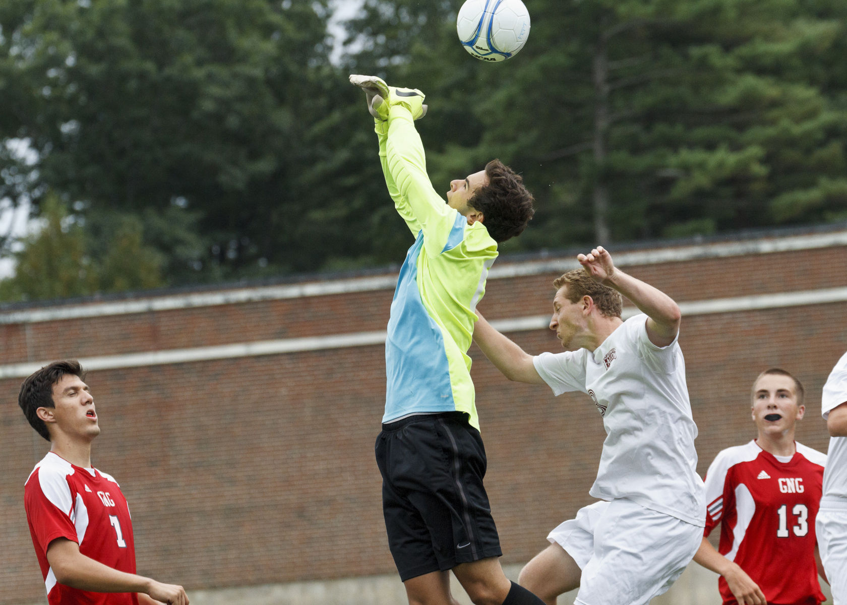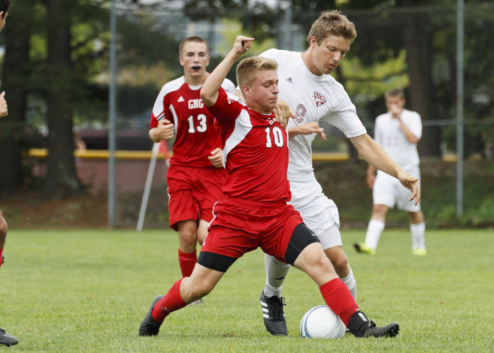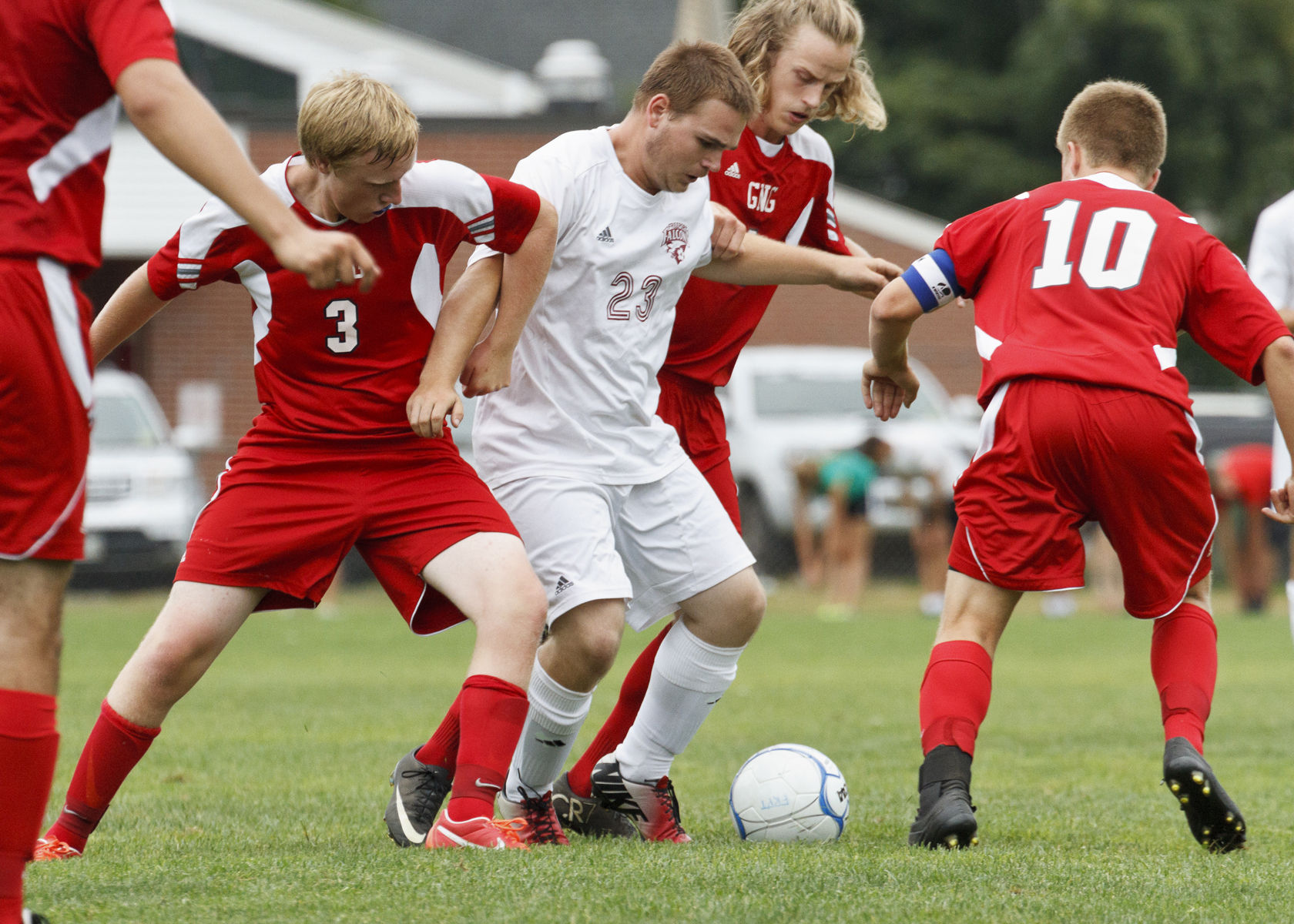 Visiting Gray-New Gloucester piled four goals, including two by Ben Rogers, on top of Freeport in the first half alone last Thursday, Sept. 10 – good timing, considering the Falcons balanced out the action in the later going.