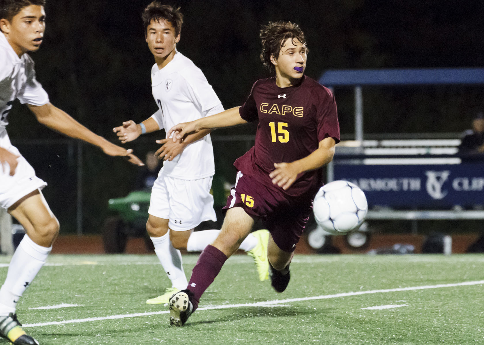 Yarmouth’s Henry Coolidge led his team to a 4-0 victory over visiting Cape Elizabeth on Saturday evening, Sept. 12, notching two goals in the first half; Patrick Grant assisted both times.