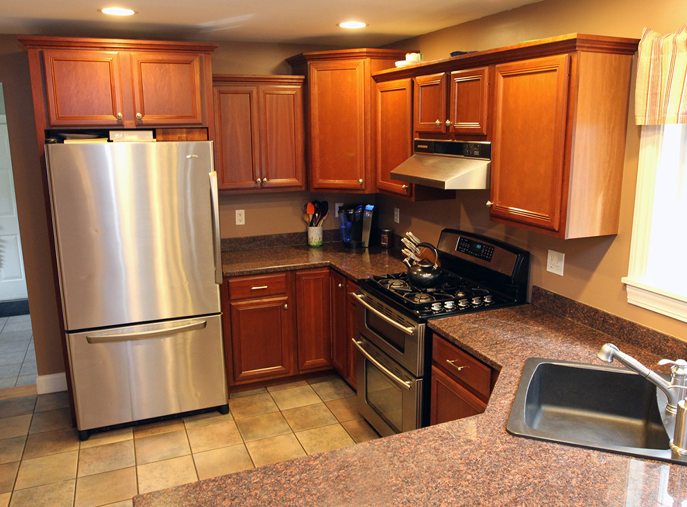 Quality-built in 2005, and scrupulously maintained, the one-owner Colonial is very nicely detailed. Off a big mudroom that includes a walk-in laundry, the tiled kitchen features granite surfaces, cherry cabinetry, and stainless appliances – Jenn-Air gas range with hood, plus both wall oven and microwave wall oven, among them. There’s eat-in space to the right of the granite bar, and a formal dining room with a pellet stove at the front of the house.