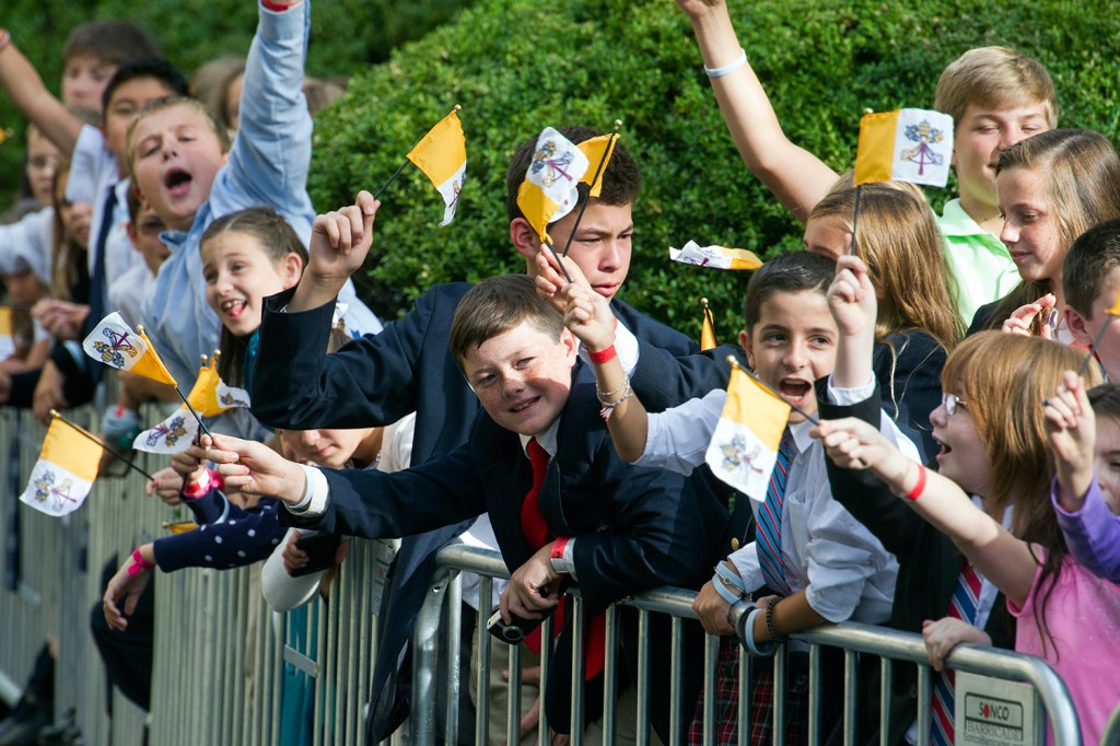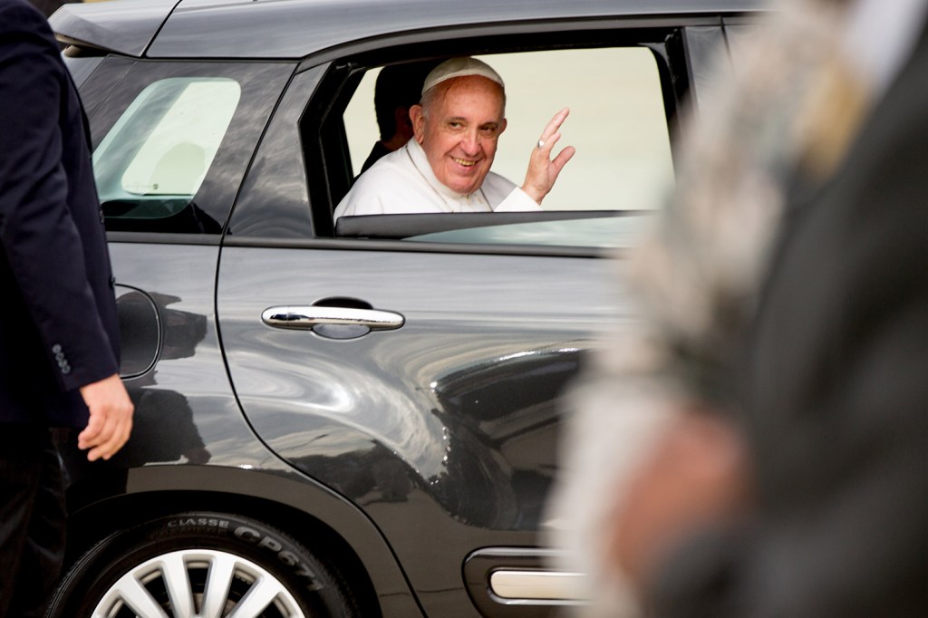 Eschewing a limousine, the pope climbed into the back of a little Fiat sandwiched between huge black SUVs. He promptly rolled down the windows, enabling the cheering, whooping crowds to see him as his motorcade took him to the Vatican diplomatic mission in Washington, where he will stay while in the nation’s capital.