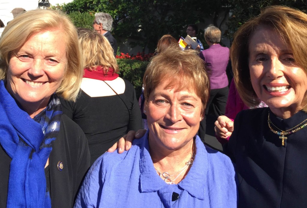 Members of Maine’s congressional delegation attended the welcoming ceremony at the White House, including U.S. Sen Angus King, I-Maine, whose guest was the Rev. Michael Seavey, administrator of Portland’s Catholic parishes. U.S. Rep. Chellie Pingree, D-Maine, was there with former Democratic state legislator Anne Rand of Portland. The two women posed for a photo with House Minority Leader Nancy Pelosi, D-California.