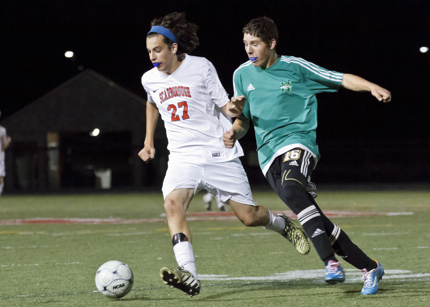 McGarvey broke a nil-nil deadlock and gave Scarborough the advantage with 22:45 remaining in the first half. Jacob Kacer assisted on the goal, sliding the ball to dead-center, 15 yards out from the Mustangs’ net; McGarvey pounced on it there, putting a light lob past Massabesic keeper Josh Castonguay.