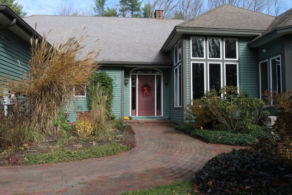 Set well back from Ferry Road, the house sits amid perhaps an acre of cleared land, its lawn and gardens encircled by towering pines with underbrush removed so that the trees appear a multitude of graceful spires.