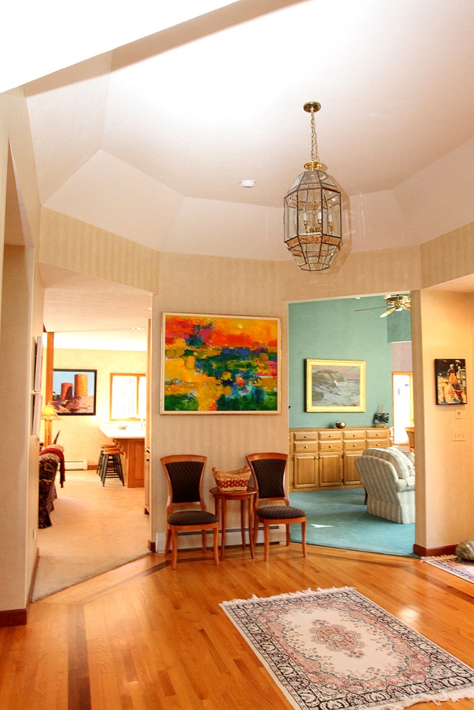 Built in 1991, the one-owner, custom-contemporary ranch provides the ease of one-level living; a wonderful degree of flexibility that allows for four bedrooms, and allows the creation of a guest/in-law suite; and lovely design features everywhere you look, such as the dark-wood inlay in the broad, octagonal foyer.