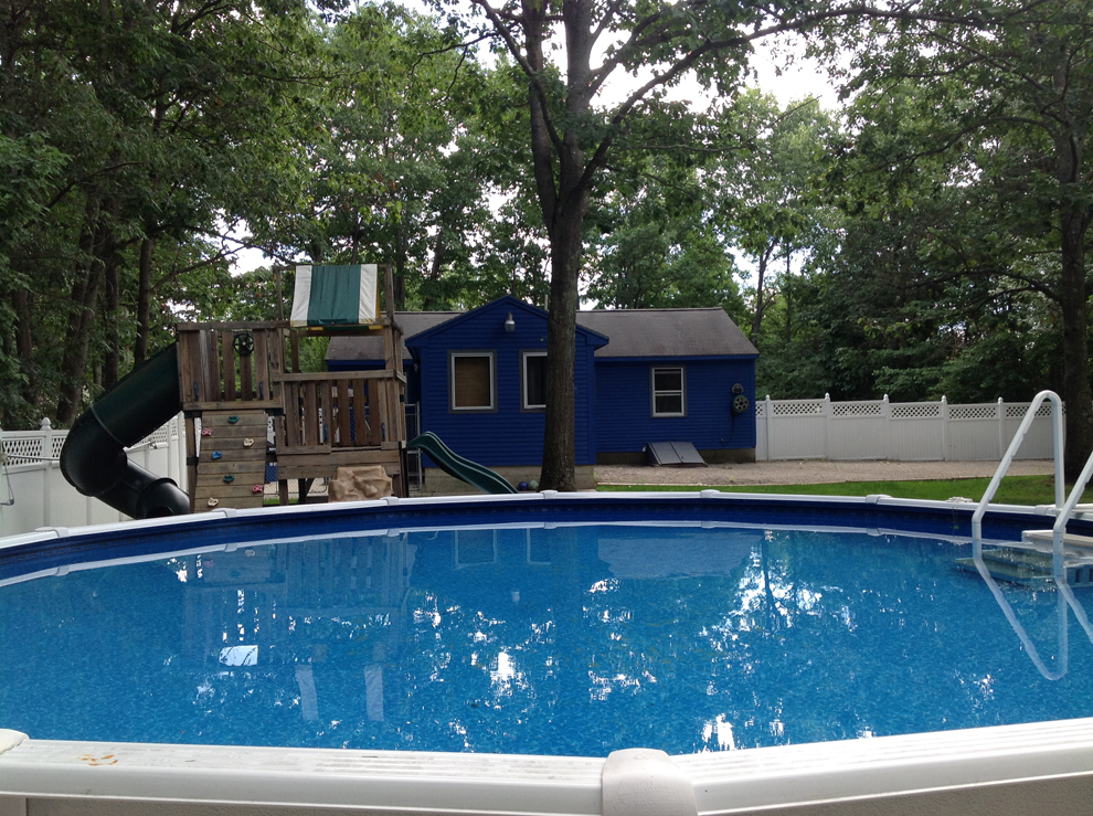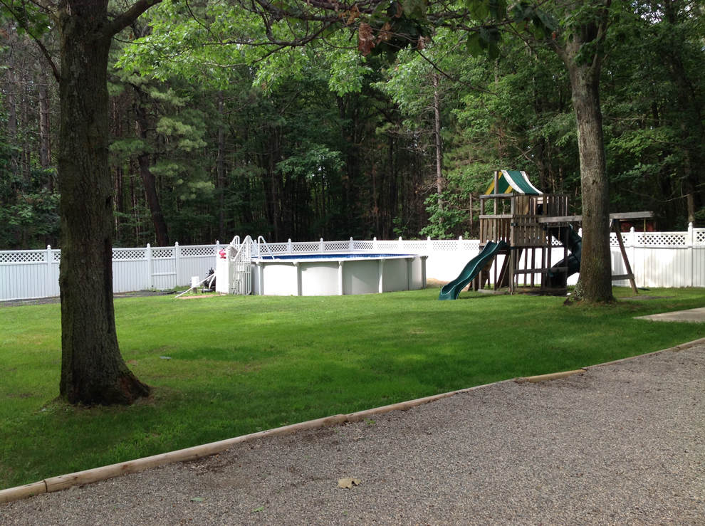 In addition, the home’s 1.44-acre lot is a winner. The house is set well back from the quiet street and has a huge, fenced back yard with a dog run and dog house, a fire pit, and a high-end above-ground pool that’s kept at 80-85 degrees by water-circulating solar heaters. There is plenty of space to add a two-vehicle, direct-entry garage.