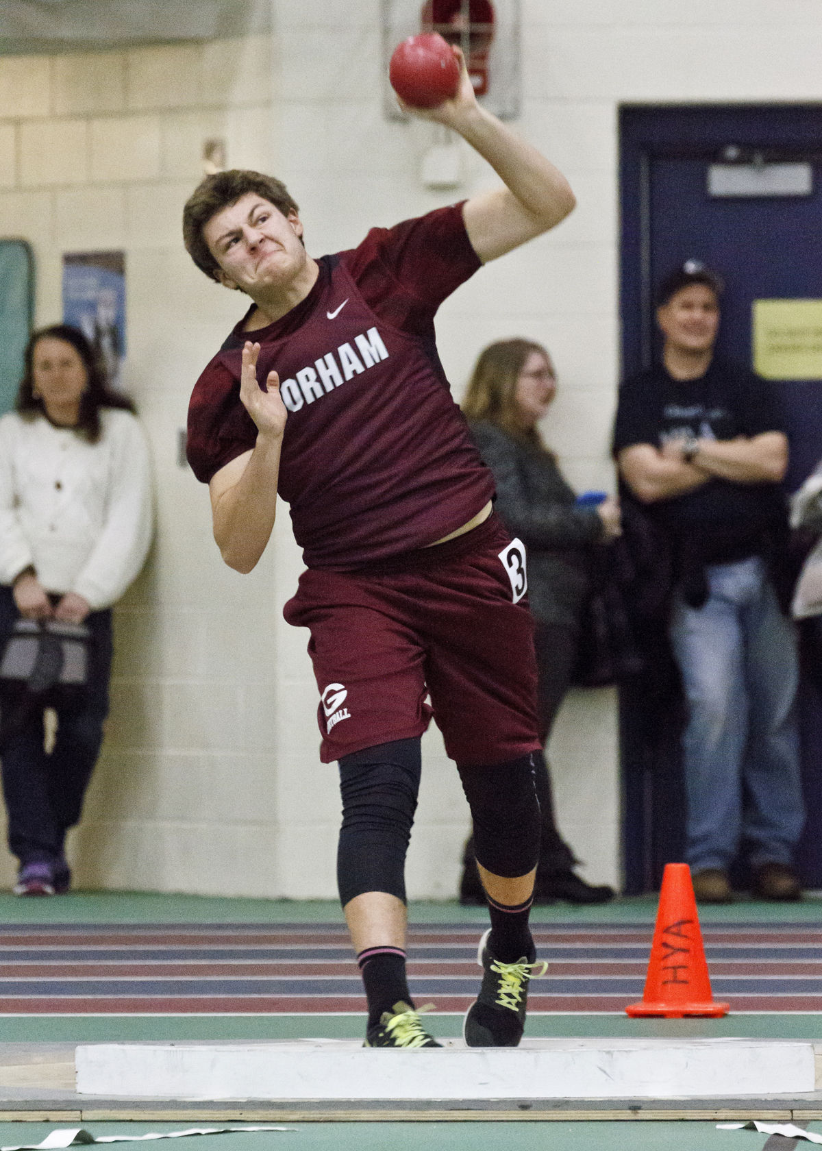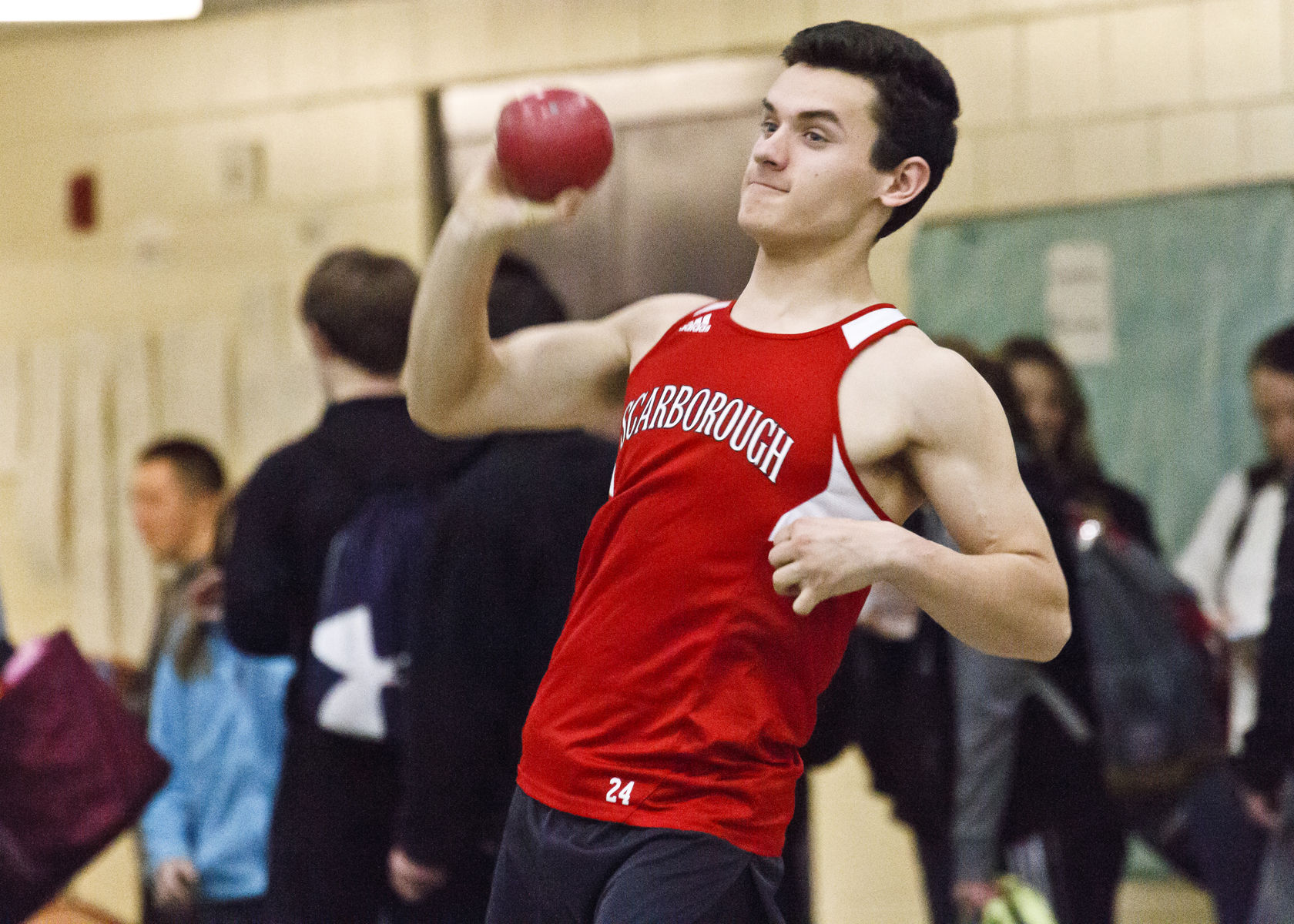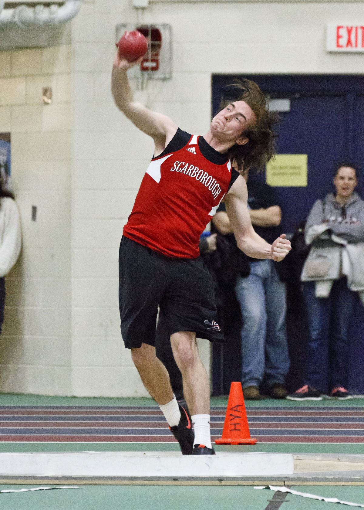 Shot Put – 1. Sebastian Osborne, Scarborough, 42-09.75; 2. Kyle Holman, TA, 42-00.50; 3. Connor Hayward, TA, 39-02.50