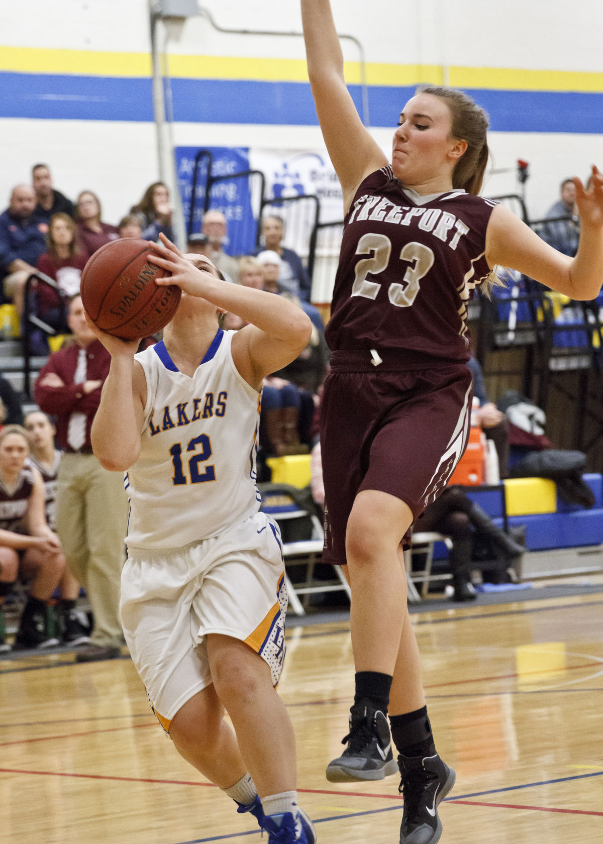 Laker Lauren Jakobs scored first, kicking off an astounding 14-1 run in which her squad held Freeport – which is having a solid season so far – without a field goal until the middle of the second quarter. Huntress, Kaylyn Jordan and Aisley Sturk also contributed during the stretch.