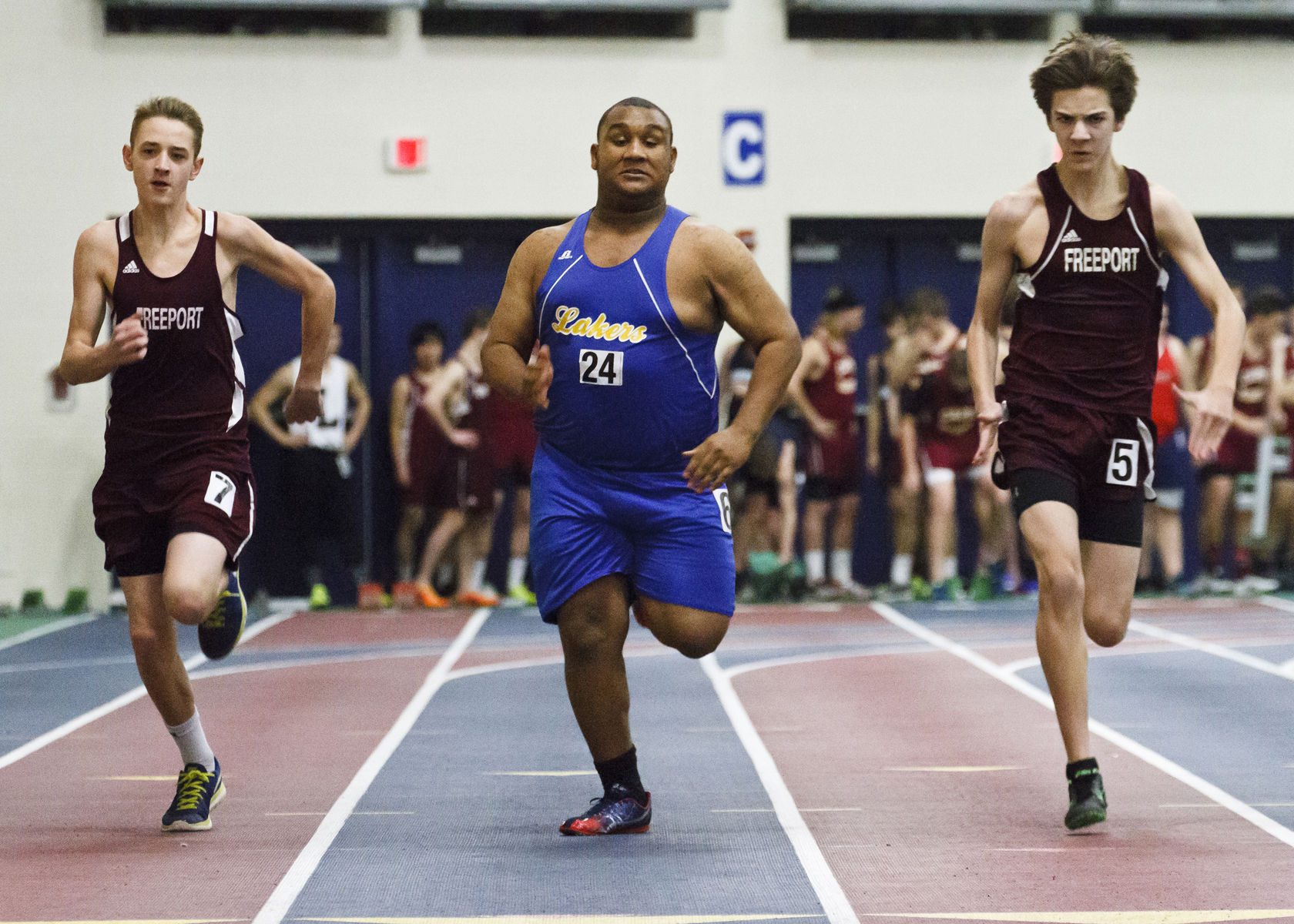 Laker Thomas Noble competes in the 55-meter Dash on Friday.