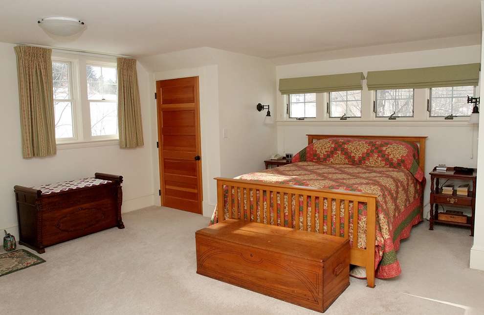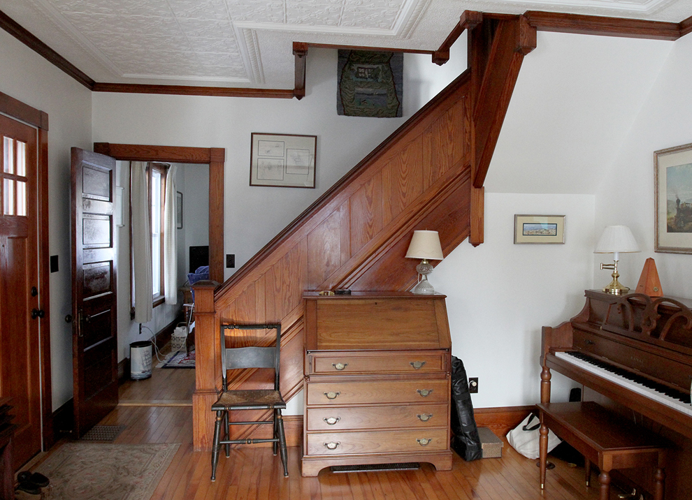 The structure dates back to 1850 (there are remnants of bark on some beams in the basement); but ceased to be the Warren Street School in 1915, after which it was transformed into this modified, spacious bungalow, rich in lovely woodwork and Arts and Crafts detailing, behind its classic farmer’s porch.