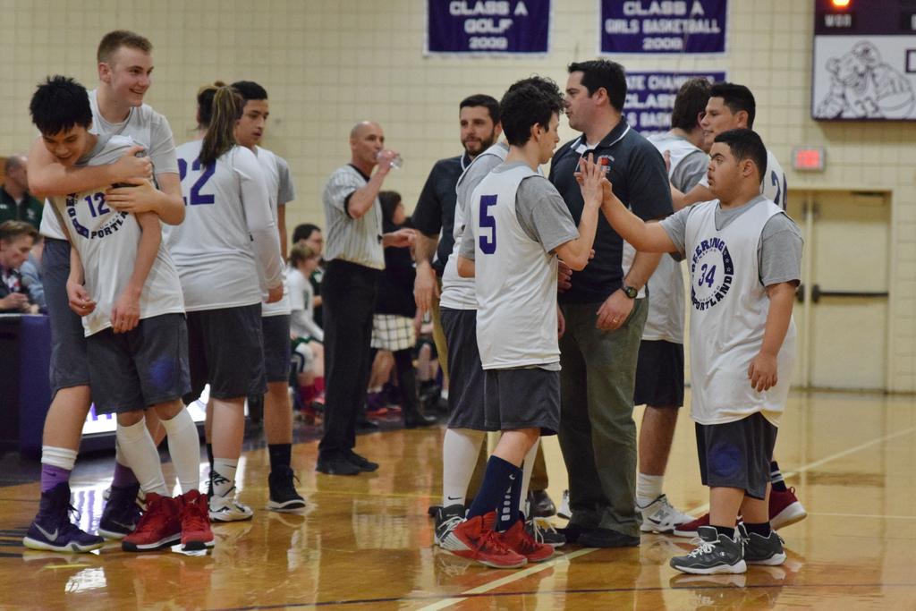 [Unified Deering Portland Basketball Team 2016] The Portland Deering Unified basketball team pairs students with developmental disabilities with non-varsity students without disabilites. The team played its first home game at Deering on Feb. 3.