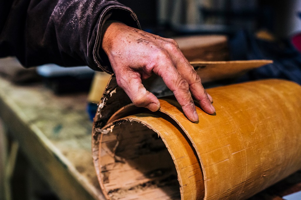 That’s where Bridges learned from his great-grandfather Sylvester Gabriel how to build canoes the traditional way, big and sturdy to navigate the rough ocean and sleek to cut into the bays and rivers. He learned to identify the good trees, how to scale them with his arms and legs and how to harvest the bark without damaging the tree when the sap is running in the spring. He learned to appreciate the smells and sounds of the forest, the sustaining lessons of the earth, and the culture of his family and of his tribe.