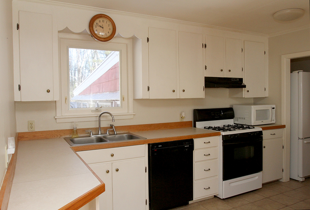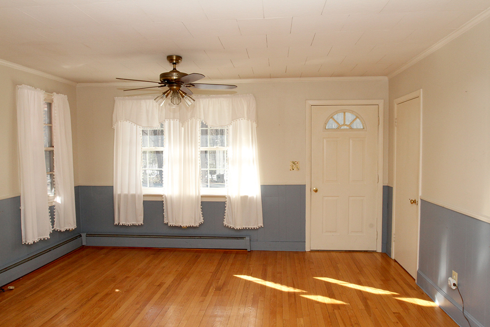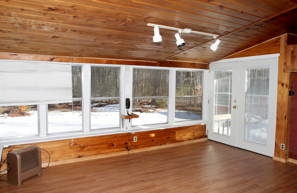 Built in 1950, the house was expanded some years ago. A new living room and a back bedroom, both good-sized, were added on the north side, bringing the home’s total square footage to 1,224. At the same time, an enclosed, three-season, paneled-ceiling sunroom/porch was added out back, and today invites finishing (new windows, heat) for year-round use.