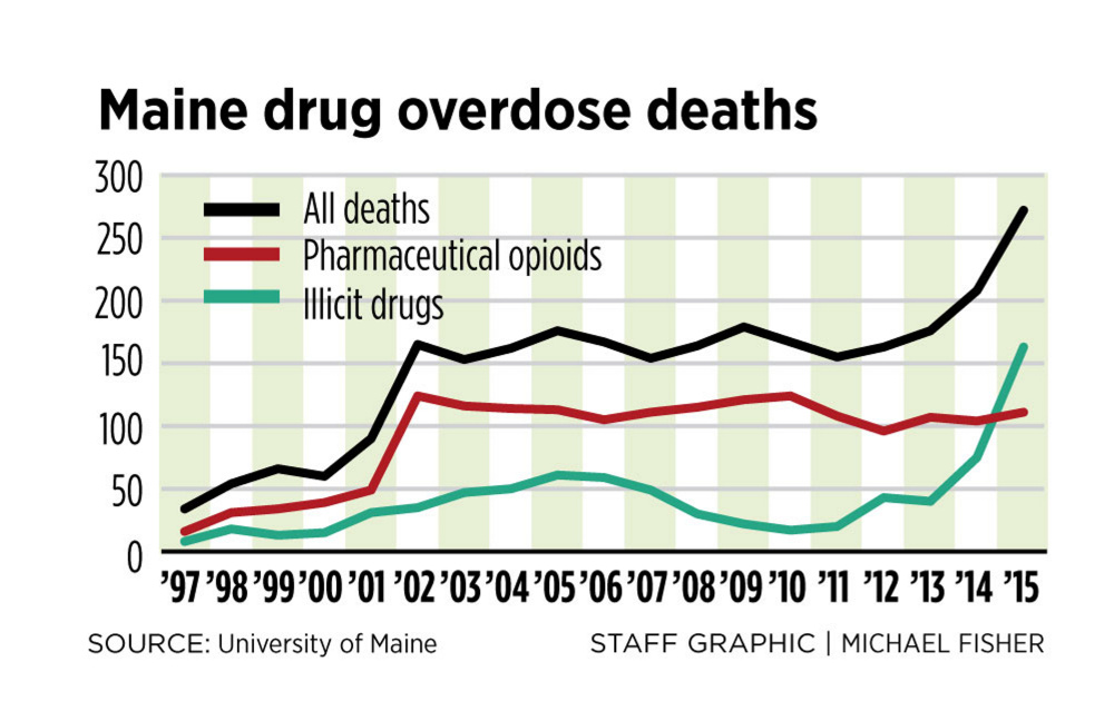 Marcella Sorg, a research associate professor at the University of Maine’s anthropology department, which compiled the statistics for the Attorney General’s Office, said the trend lines over the past several years clearly show many people move from prescription addiction to heroin.