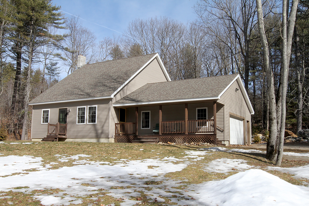 SOUTH HIRAM – Set back about 300 feet from a quiet road, on a deep, private, two-acre lot that extends up a gentle slope with ancient stone walls trailing through it, here is a 2012-new custom home whose features include beautifully antiqued woodwork trim and cabinetry.