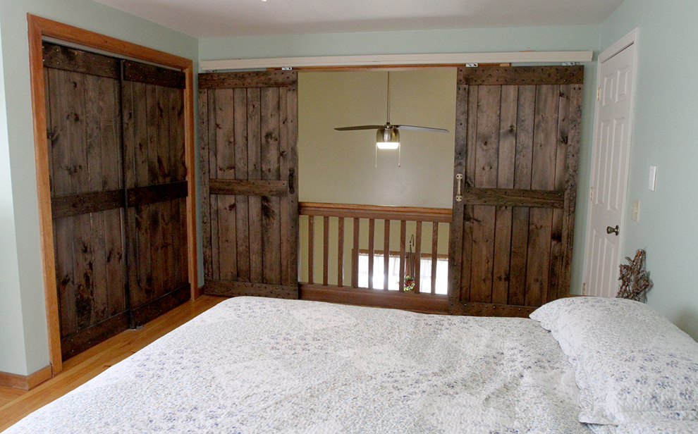 The entire first level is tiled, but it’s the woodwork that really catches the eye. On the open, central staircase, a “roughed” plank and wall paneling draw the gaze up to a second-level balcony bedroom that can be closed off by sliding, barn-style doors, their hardware ingeniously gun-blued for a no-shine finish.