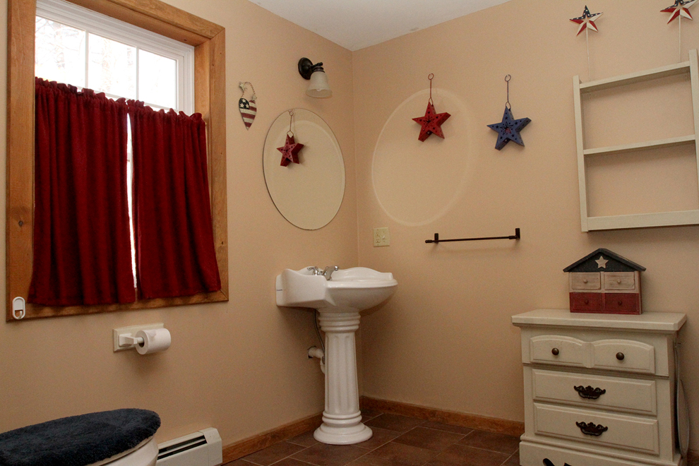 There’s a second, shower-enclosure full bath on the pine-floors second story , to serve the two bedrooms. The full basement has a wood stove on its utilities side, and thanks in part to excellent ceiling height, invites finishing.