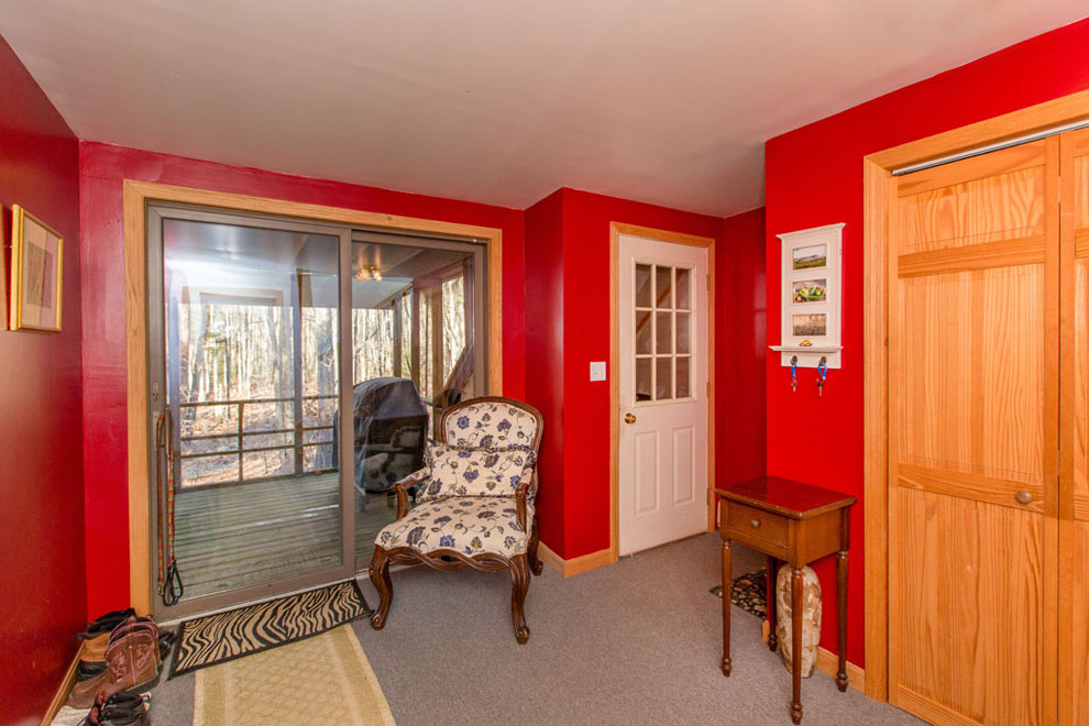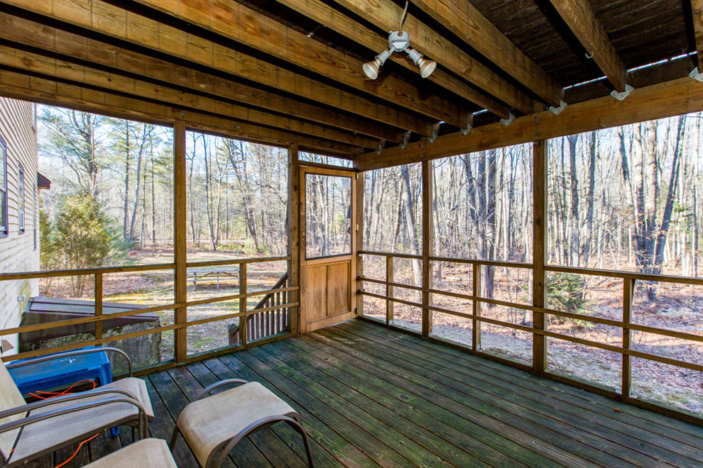 There’s a double closet, too, and French doors that open out to a private deck above the screen porch. The master bath features a newer, semi-circular shower enclosure.
