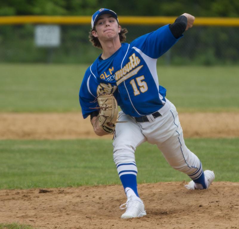 Falmouth pitcher Reece Armitage shows off his dominant one-hit form during Saturday’s 5-0 win over Portland in a Class A South baseball semifinal. The Yachtsmen advanced to meet South Portland in the regional final.