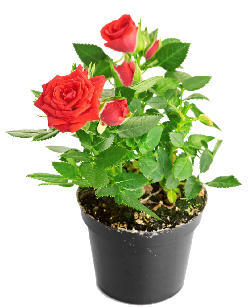At this time of year, roses will be sold in pots. Dig a hole twice as wide as the pot, plant the rose at the same level it has been growing at in the pot and water heavily. As with all plants, you should water heavily and regularly for the first year it is in the ground.