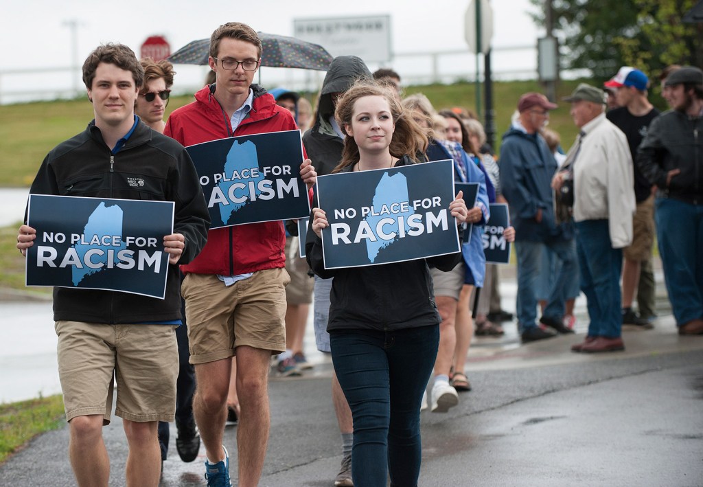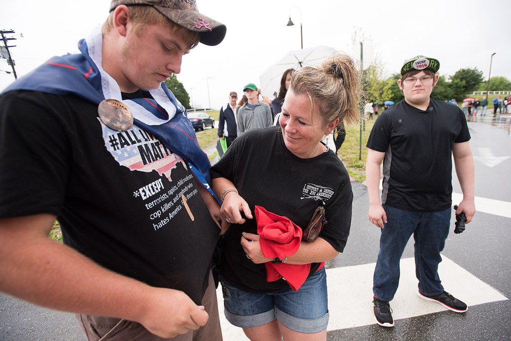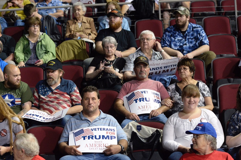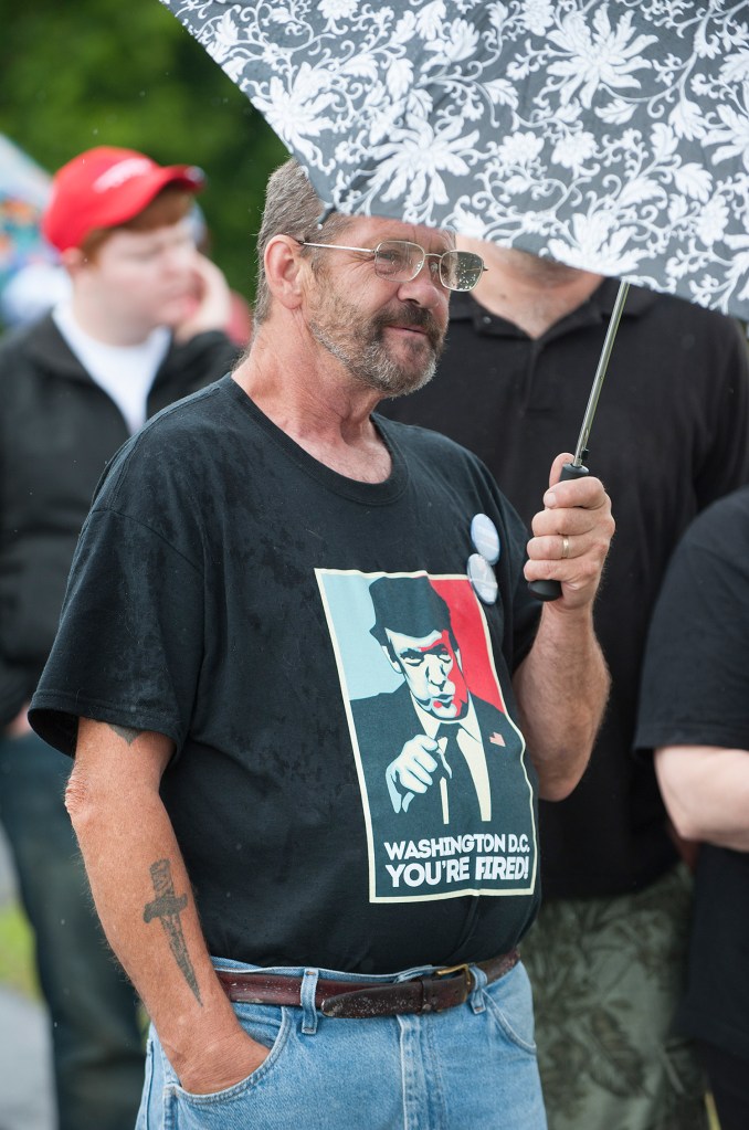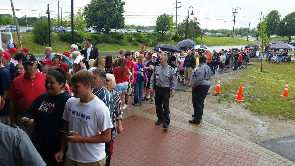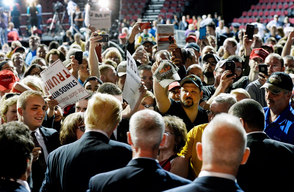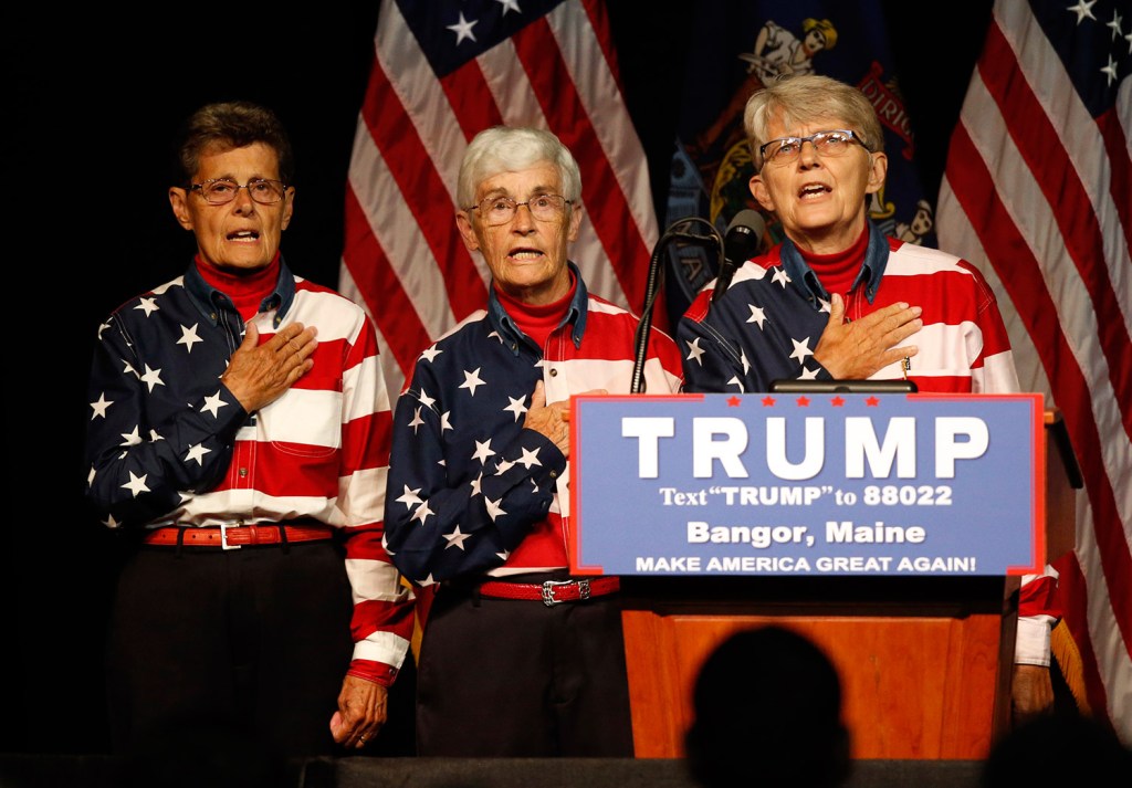 Republican presidential candidate Donald Trump said at a rally Wednesday in Bangor, “Every country that we do business with looks at us as, we are the stupid people.” Robert F. Bukaty/Associated Press