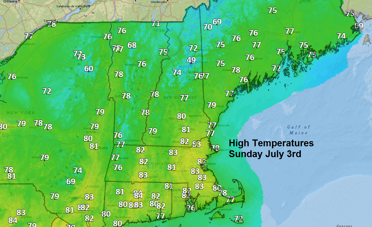 Cape Cod and the Islands: There won’t be much of a difference there except water temperatures will be warmer – well into the 60s.