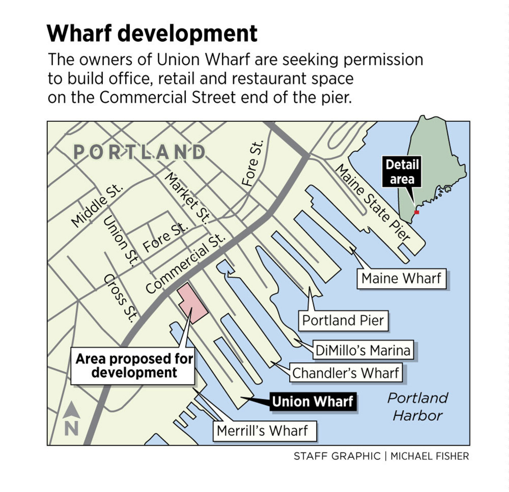 New developments on the water side of Commercial Street have been controversial in the past, as some fear office and restaurant users would eventually replace the working waterfront. Union Wharf lies in the heart of the industrial waterfront, but no opposition has so far been generated by the plan, said Elizabeth Boepple, chairwoman of the Portland Planning Board, which conducted a preliminary review of the project.