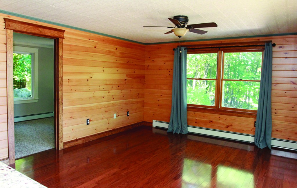 Inside, the home has been beautifully renovated within the last year. All windows are new. The paneling is particularly cool. Some is lightly pickled, some is whitewashed, some is natural, some darker-stained. Some is vertical; some horizontal; and some, on the staircase, diagonal. All is in harmony.