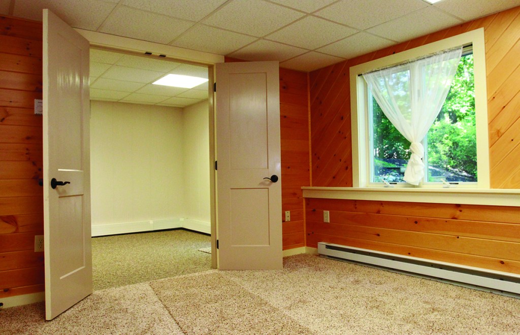 The second bedroom, also with double closet, is on the bright, carpeted, walkout lower level, as are the “mud” room with cubbies; utility/workshop/storage room; and a half-bath.