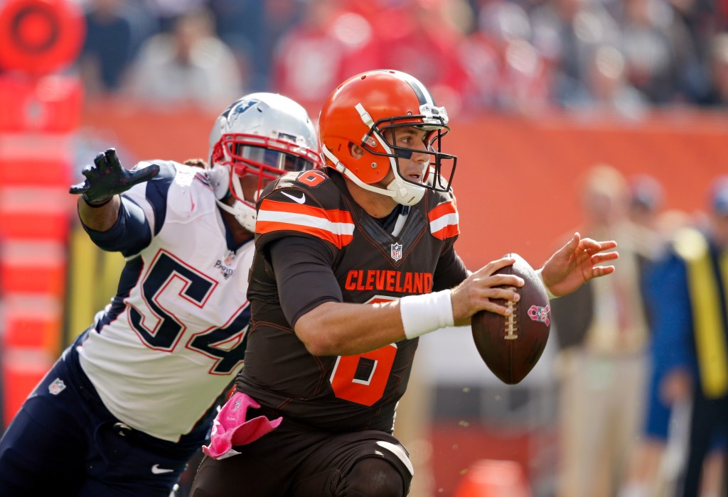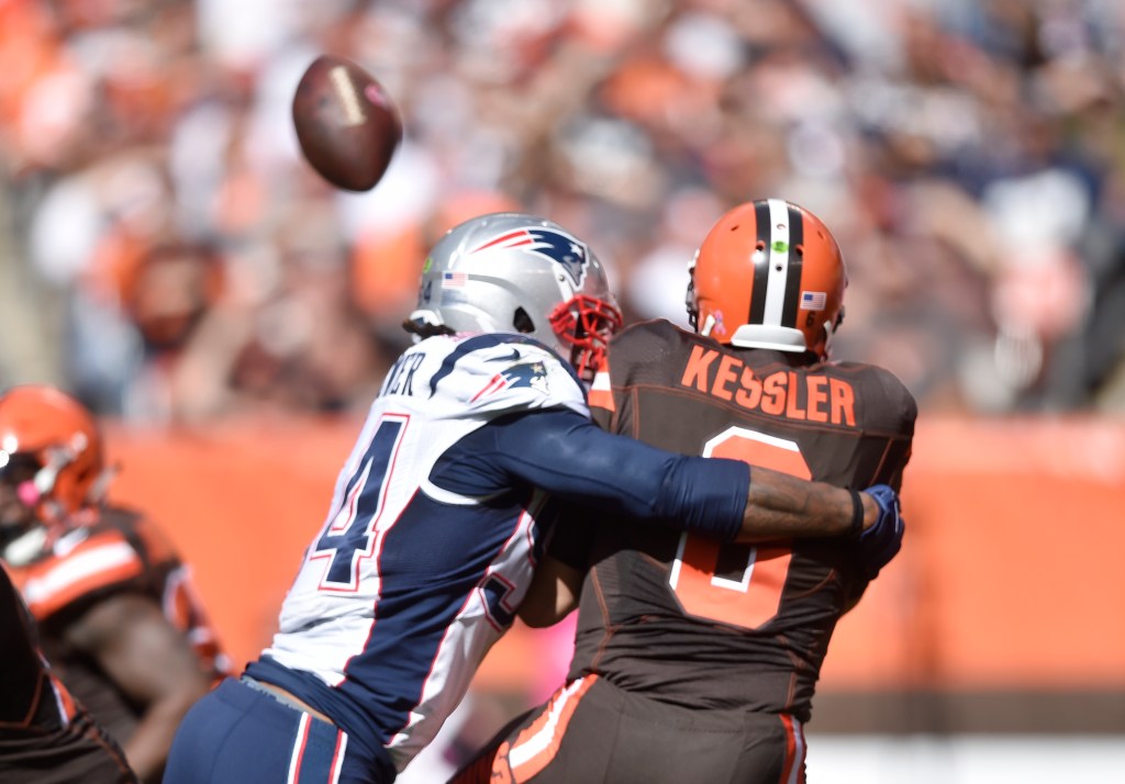 BROKEN BROWNS: Kessler took a hard shot from Patriots linebacker Dont’a Hightower while trying to throw a swing pass to Duke Johnson at the Cleveland 10.