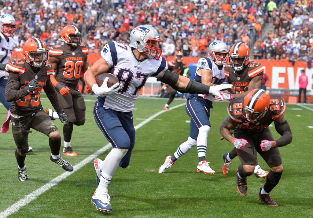 Brady completed his first pass to his favorite target, Edelman, and connected twice on New England’s opening drive with Gronkowski, who sidestepped a couple tacklers and looked like the indomitable “Gronk” while bulling his way to the Cleveland 1.