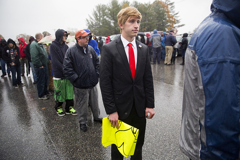 Jonathan Pozzi, a 19-year-old from Wilmington, Massachusetts, came dressed as Trump. He said this was his fifth rally.